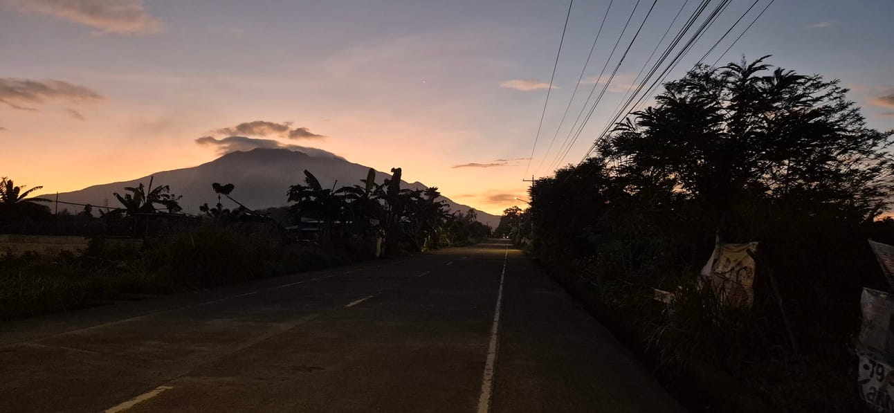 Waiting for the sun to rise before starting a road trip in a nearby town.